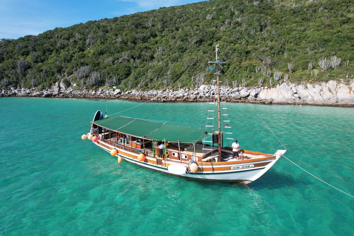 O passeio de barco pode acontecer no Saveiro Don Juan ou embarcações parceiras selecionadas para oferecer a melhor experiência para a sua viagem.